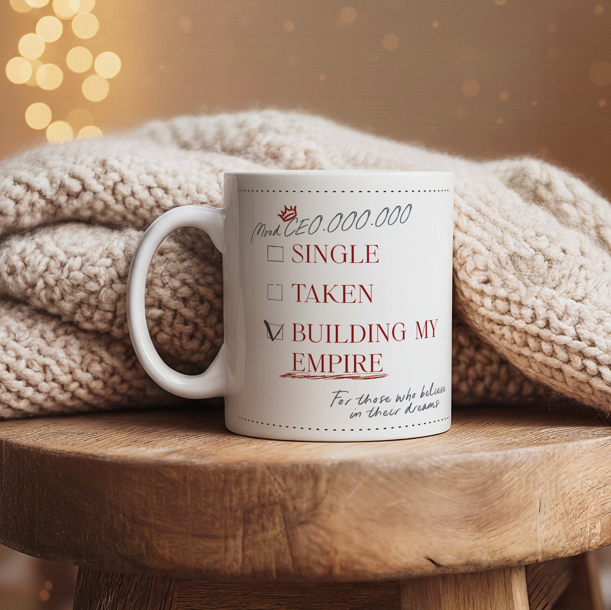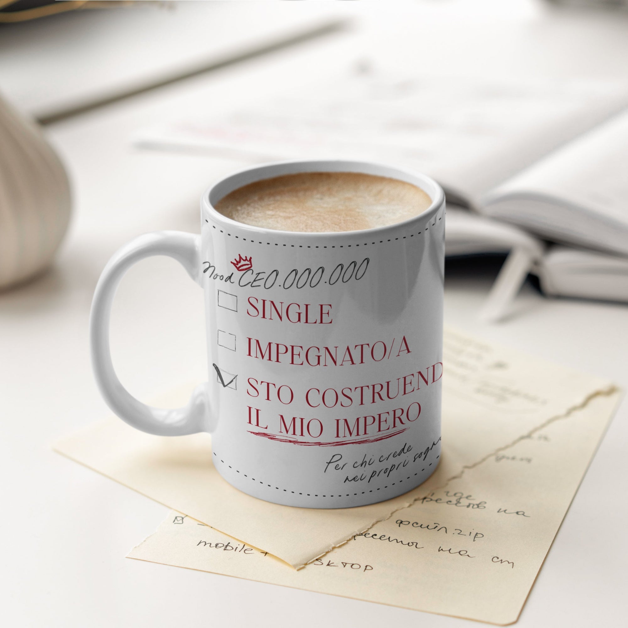 Tazza in ceramica, realizzata a mano in Italia. Con la frase “Sto costruendo il mio impero”, è pensata per chi sogna in grande e lavora ogni giorno per costruire il proprio futuro. Un’idea regalo motivazionale perfetta per imprenditrici, freelance e sognatori determinati. Ogni tazza P.S. – Le Parole che Scaldano è personalizzabile e nasce da un processo artigianale curato nei dettagli.